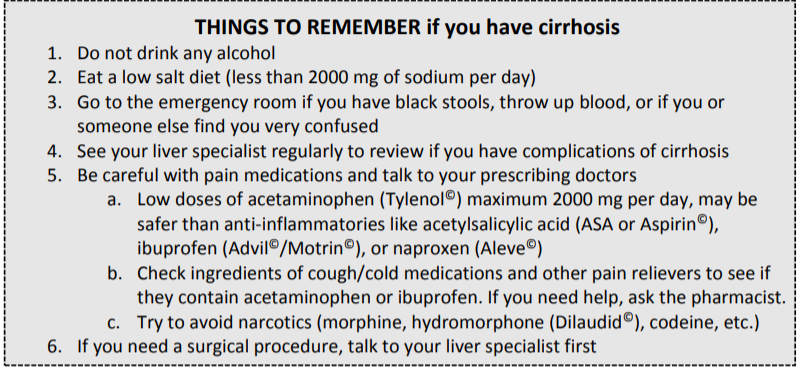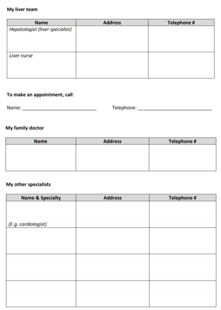 Here you will find two helpful information cards Cirrhosis dos and don'ts card My liver care team card How to use the cards?Option 1:Print, fill in the necessary information and keep them in your wallet. To print right click on needed document and save or download pdf file.Option 2:Save it in your phone or take a picture and save it in a special album.